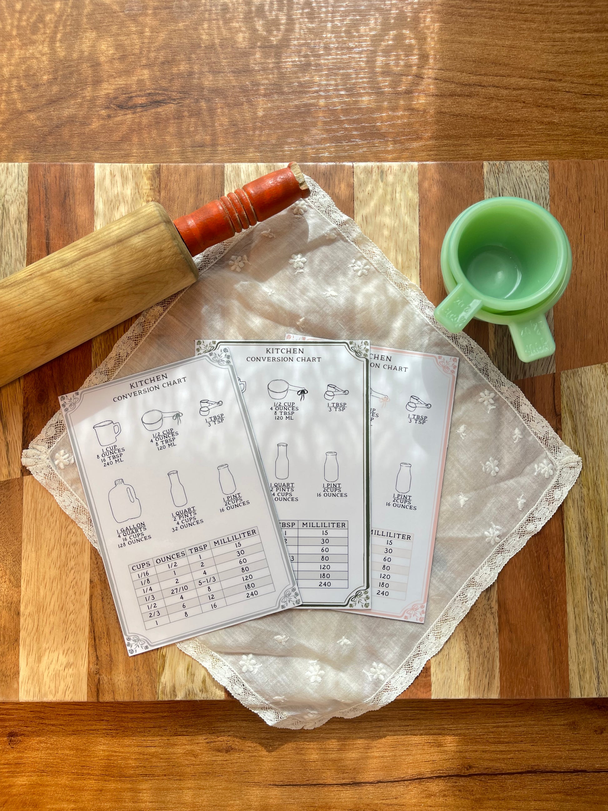 This 4x6 magnetic kitchen conversion chart is designed for quick, easy reference right on your fridge. Clear layout with cups, ounces, tablespoons, teaspoons, pints, quarts, gallons, and milliliters.